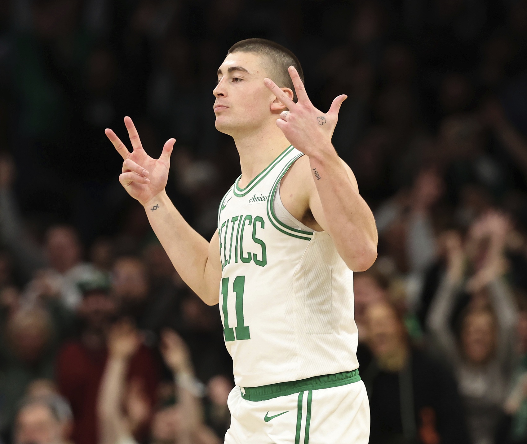 G5半场结束前4秒,普理查德替补登场。凯尔特人全队接到指示,要尽力将球交到他手中。在东契奇罚球不中后,霍福德抢下篮板,迅速寻找普理查德。虽然看到东契奇上前干扰,但霍福德知道这位全明星来不及封堵。普理查德告诉自己:把球投出去,给它一个机会。起初,他完全没有意识到周围正在酝酿的疯狂。
