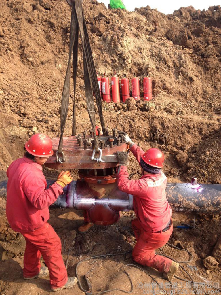 管道盘式封堵适用于管道标准而且管道内壁没有结垢、腐蚀的长输管道,大多用于输送石油、天然气、成品油的长输管道,以及管道的抢修工作。该工艺具有封堵严密、承压高、施工快的特点。